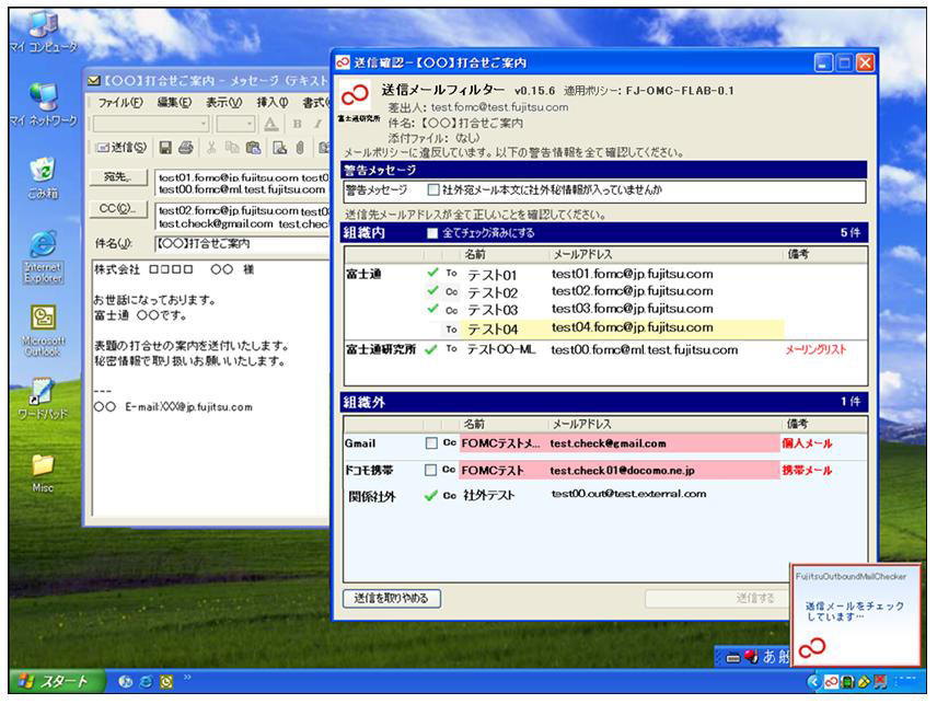 宛先ミスや添付ファイルの誤りなどメールからの情報漏洩は増加中であり、個人情報や企業の機密情報を守るために効果的な対策が求められています。株式会社富士通研究所(注1)(以下、富士通研究所)は、メールからの情報漏洩対策として、宛先ミスから機密情報の流出防止まで対応するメール誤送信対策技術を開発しました。利用者に合わせて宛先チェックやルールによる警告を効率的に行うメールフィルターおよび、機密メールのテキスト特徴を記憶し、それを部分的に流用したメールでも検出する技術の組み合わせで、導入コストに応じたメールからの情報漏洩対策が可能になります。