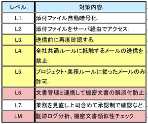 ![]() 表1 メール情報漏洩に対する対策レベルと内容 |