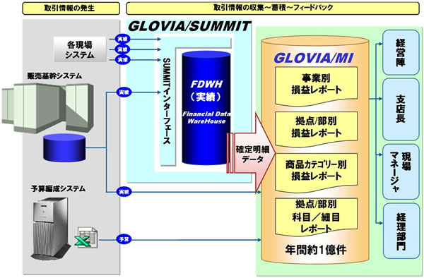 富士通の「GLOVIA/SUMMIT(グロービア・サミット)(注2)」を採用した会計システムや販売管理システムなど、複数の基幹システムから任意のフォーマットでデータを収集し、事業損益を高速に自動集計することができます。これにより、事業損益の早期把握を実現すると共に、業務効率を飛躍的に向上させることができました。