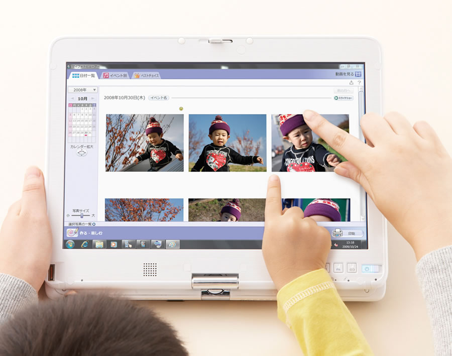 タッチ操作を可能にする「Windows® 7」の新機能「Windows® タッチ」を、新スタイル一体型PC「FMV-DESKPOWER Fシリーズ」および12.1型コンバーチブル・ノート「FMV-BIBLO MTシリーズ」の計2シリーズ4機種に搭載しています。直感的な操作でパソコンを利用できるため、お客様の使い勝手が大幅に向上します。