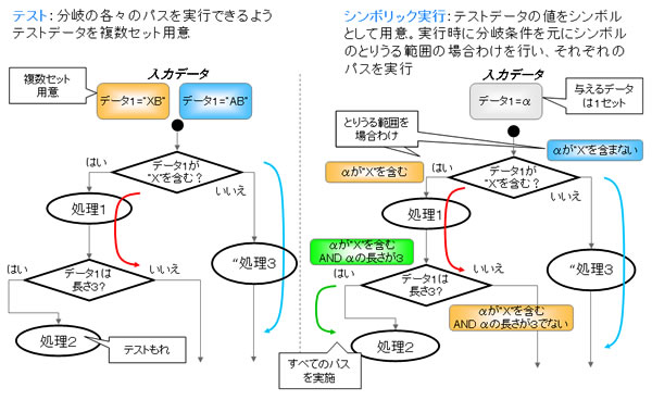 テストデータの値をシンボルとして用意し、実行時に分岐条件を元にシンボルのとり得る範囲の「場合分け」を行いながら、それぞれのパスを実行する方式。 - 注6 Turing(チューリング)賞: