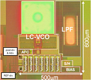地上デジタルテレビ放送受信用の周波数シンセサイザの小型化に成功