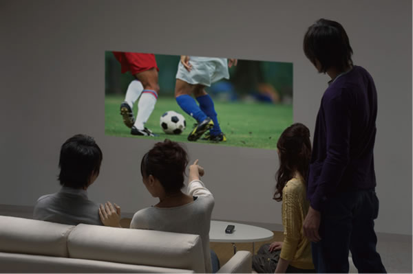 F-04Bのディスプレイに表示されるものすべてを最大66インチの大画面で投影できるため、ワンセグや、撮影した写真や動画を、家族や友達と楽しむことができます。