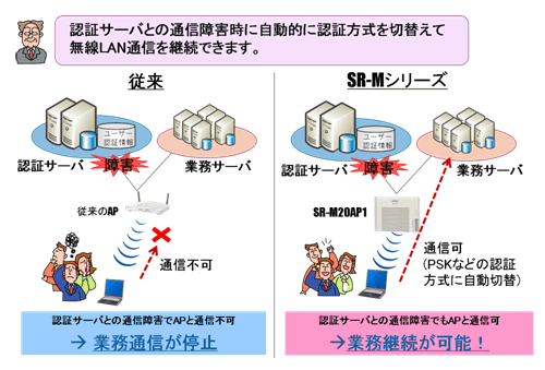 当社は、無線LANアクセスポイント「SR-M20AP1」に対し、高速無線LAN規格対応や認証自動切替の機能を新たに搭載したバージョンアップ製品を本日より販売開始します。