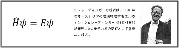 身の回りのさまざまな物理や化学現象は、シュレーディンガー方程式(図2)とよばれる方程式に支配されています。シュレーディンガー方程式を計算することができれば、原子や分子の状態やエネルギーが分かり、いろいろな現象を理解できます。