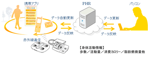 携帯電話とパソコンを活用した健康サービスを提供