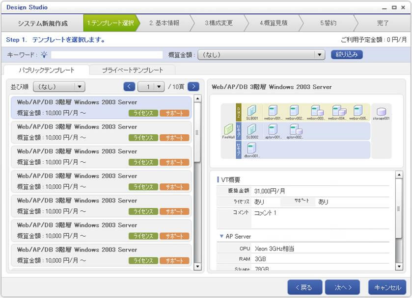 当社は本サービスを、2010年5月末より9月末まで、200社にトライアルで提供しており、このたび、トライアルの中でお客様からの要望が高かった仮想ICTシステムの構成テンプレートの拡充やネットワーク接続機能、ユーザー・コミュニティー機能などを新たに追加し、より信頼性と利便性を高め、商用サービスを提供開始します。