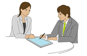 生涯設計デザイナーが紙のような感覚で持ち運びしやすいパソコンで、常に携帯しお客様へのコンサルティングをサポート。