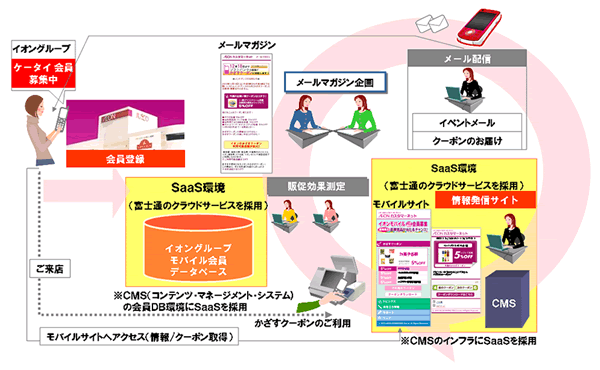 当社は、イオンマーケティング株式会社(本社:千葉市美浜区、社長:小賀 雅彦、以下、イオンマーケティング)が2010年10月に開始された新サービス「イオンかざすクーポン」のICTインフラに当社のクラウドサービスを提供しています。