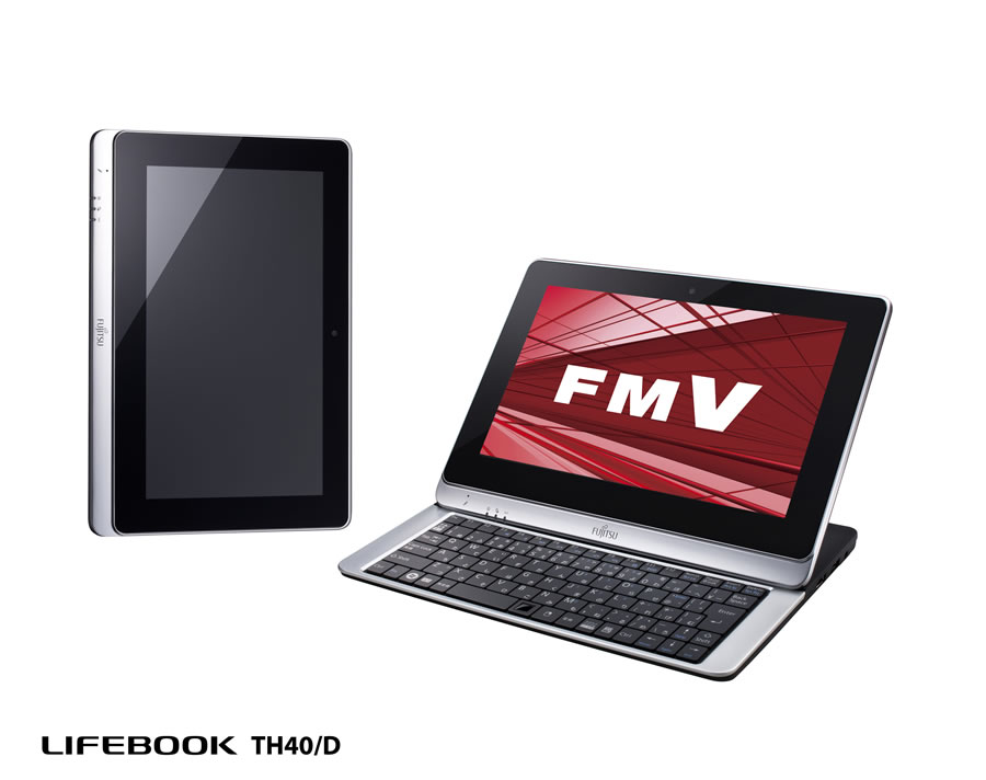 「LIFEBOOK TH40/D」WEBや写真を閲覧する場合はスレートPCとしてタッチで操作、メールなどしっかりと文字入力を行う場合はキーボード入力と構造を切り替えて使用できる「ハイブリッドモーション」を実現し、利用シーンに合わせた2種類の使い方が可能です。約10.1型ワイド液晶搭載で使いやすく、約17.4mmの薄型筐体、約1.1kgの軽さで持ち運びも容易です。