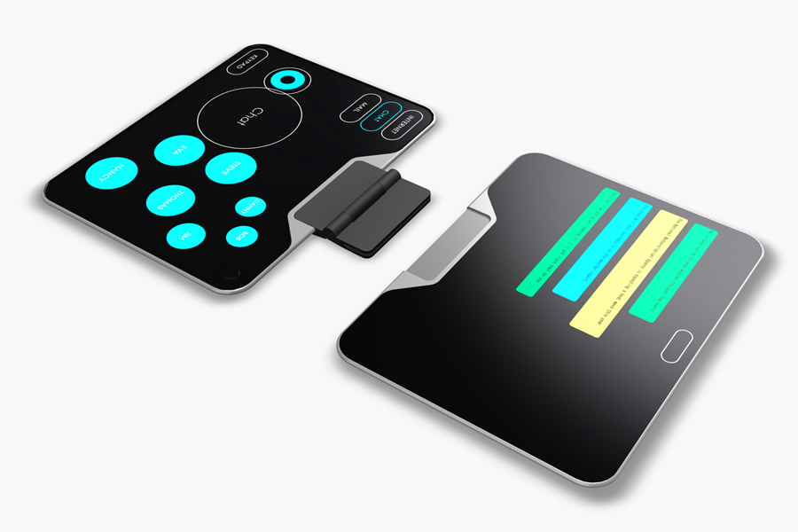 作品概要: 形状を自由に変えて、コードで囲った内側にディスプレイを表示させるコンピューティング機器です。多様な使い方ができることに加え、複数人が同時にディスプレイを操作することができる、新たな「コミュニケーションの場」を創り出すデザインです。