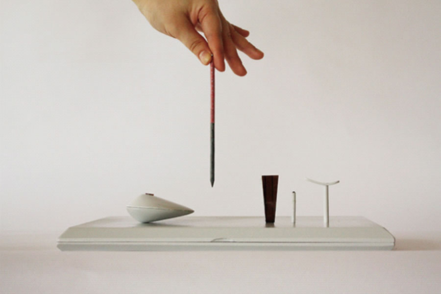 作品概要: タッチスクリーンを押すことで電気が発生し、使うことによって電力を自身で賄うPCの提案です。環境への配慮に対する考えと実現性が検討されたデザインです。