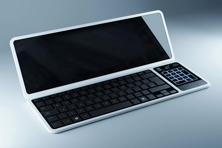 作品概要: セパレートスタイル、スレートスタイル、ノートスタイルなど、アプリケーションや利用目的に応じたフレキシブルな操作性を実現するデザインの提案です。とりわけバックカバーにも着目し、PCを閉じた状態での使い方まで考慮されたデザインです。