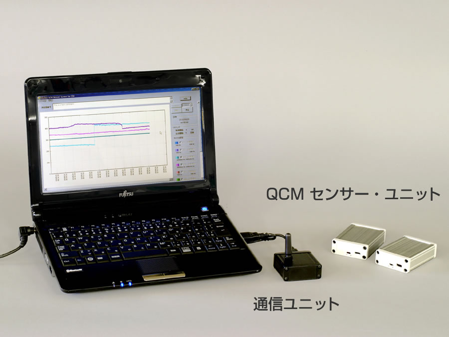 - 水晶発振子に物質が吸着すると発振周波数が変化することを利用して、吸着したものの質量を非常に高い感度で測定する装置。