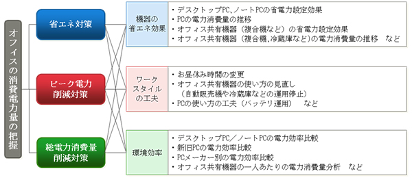 スマートコンセントを活用することで、単に消費電力量を測定するだけでなく、オフィス機器の運用改善や設定変更によって得られる省エネ効果や、ピーク電力削減に有効な施策を「見える化」することができます。当社は今後もスマートコンセントを利用してオフィス機器の消費電力量を「見える化」し、お客様の省エネ対策を積極的に支援していきます。