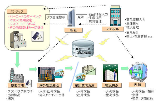 テンタックはアパレル副資材の製造販売を生業とし、ブランドタグ、ブランドネームや転写マーク、洗濯ネームなどアパレル製品には無くてはならない商材を扱い、ブランドタグでは、国内・海外合わせ年間約12億枚の出荷実績を有します。今般、海外を中心にRFID付きブランドタグの導入ニーズが高まってきたことを捉え、ブランドタグへのバーコードのマーキングと共にRFIDの初期設定やマスターデータ作成も請け負うサービスを新しいビジネスモデルとすべく検討を進めてきました。