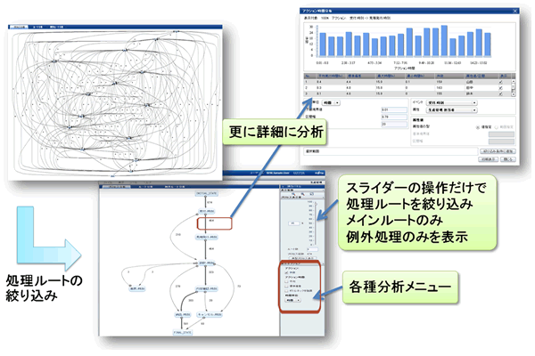 拡大イメージ - 簡単操作で業務分析でき、業務プロセスの問題箇所を容易に特定