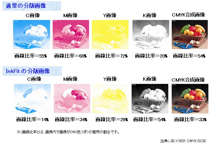 図. 従来方式とInkFit方式の画線比率の比較