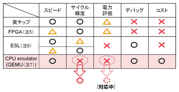 ARMコアを高速にシミュレーションするには、JAVAなどで使われるJITコンパイル方式と呼ばれるシミュレーション技術を使うのが一般的です。しかし、JITコンパイル方式は時間情報を忠実に再現するには不向きなため、サイクル動作のシミュレーションが必要な場合は、これまでのJITコンパイル方式よりも数百倍遅いシミュレーション技術を利用するしかありませんでした。
