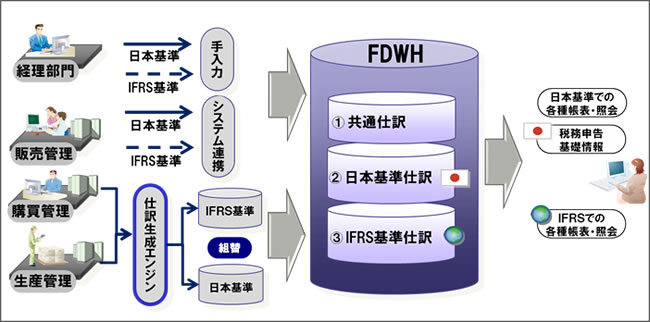 - 日本固有の税制や商習慣を踏まえたIFRSアドプション対応を行います。自動仕訳生成エンジンにより、IFRS強制適用時には、お客様の業務負荷を最小限に抑えたアドプションの対応を実現します。