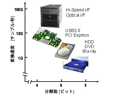 図1 アナログデジタル変換器の性能と応用分野