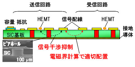 世界初!窒化ガリウムHEMTを用いた小型・高出力な10GHz帯送受信1チップ集積回路を開発