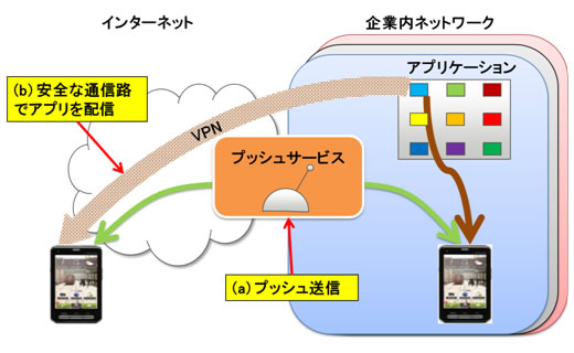 図3 セキュアアプリ実行環境 - シームレスプッシュ技術