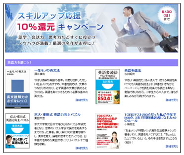 なお本日から9月30日まで、英語、会話力など役立つノウハウが満載の書籍を対象に、購入金額からの10%還元を行う「スキルアップ応援 10%還元キャンペーン」を実施しております。iPhoneやiPadではじめて「BooksV」をご利用いただく方も、お試しとして気軽にご利用いただけます。