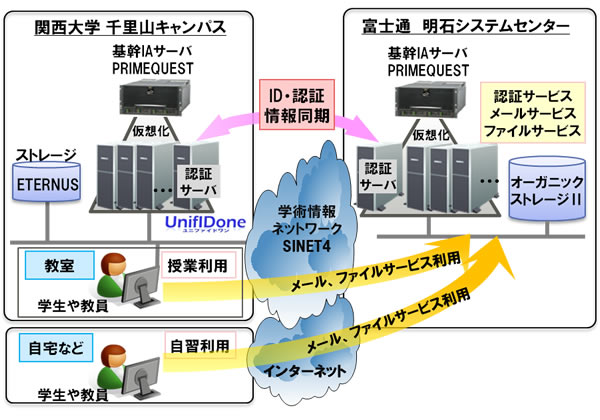 学校法人関西大学(所在地:大阪府吹田市、理事長:池内 啓三、以下、関西大学)は、富士通株式会社(本社:東京都港区、代表取締役社長:山本 正已、以下、富士通)と共同で、クラウド活用により教育研究システム基盤を強化し、2012年9月21日に本格運用を開始しました。