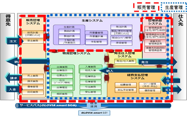 さらに、既存製品である「GLOVIA smart 会計」や得意先・仕入先とのシームレスな連携により、データ精度の向上と業務効率化による決算の早期化を実現し、食品業の経営をトータルにサポートしていきます。