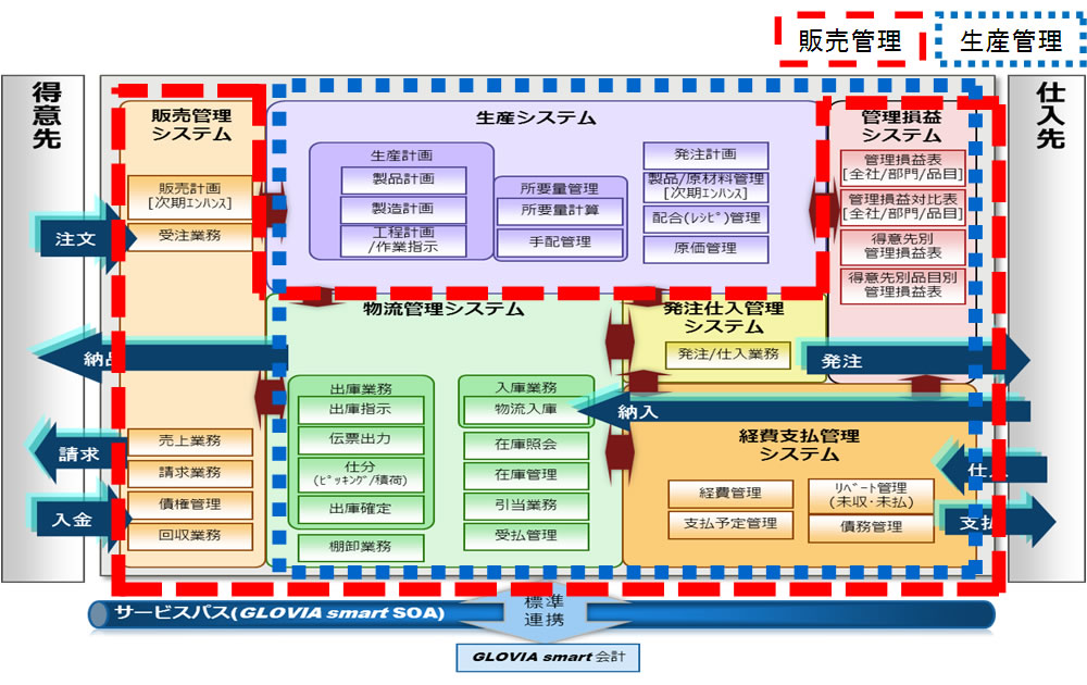 - 製造から販売までの各業務をリアルタイムで連携