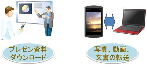 近年、携帯電話の高機能化やタブレットの普及により、従来PCでしか実現できなかったファイル閲覧や編集などが携帯端末で可能になり、それに伴いPCと携帯端末間でのファイルの転送のニーズが高まっています。例えば、PCで作成したファイルを携帯電話やタブレットにコピーして閲覧や編集、もしくは携帯電話で撮影した写真や動画をPCにコピーして視聴するといった利用シーンが増えています。しかし、PCと携帯電話の連携は一般ユーザーにとってまだまだ敷居が高く、PCと携帯電話間のファイルの転送をより簡単に実現することが望まれていました。