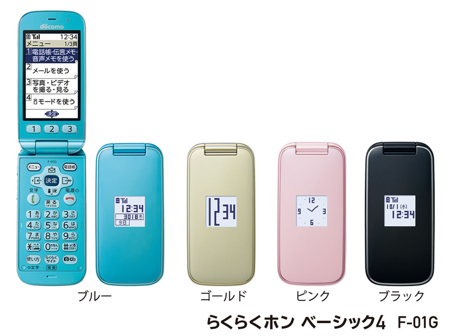 「らくらくホン ベーシック4 F-01G」は、「らくらくホン ベーシック」シリーズがこだわってきた、通話やメールなど携帯電話の基本機能がシニアにとってより使いやすいことや、新機種になっても操作が変わらないことで継続的に安心して利用できることを継承しました。今回新たに、お客様から要望の高かった防水・防塵機能を追加し、雨の日の外出先やキッチンなどの水回り、釣りやガーデニングなどのレジャーを楽しむ場合などでも、安心して利用できます。