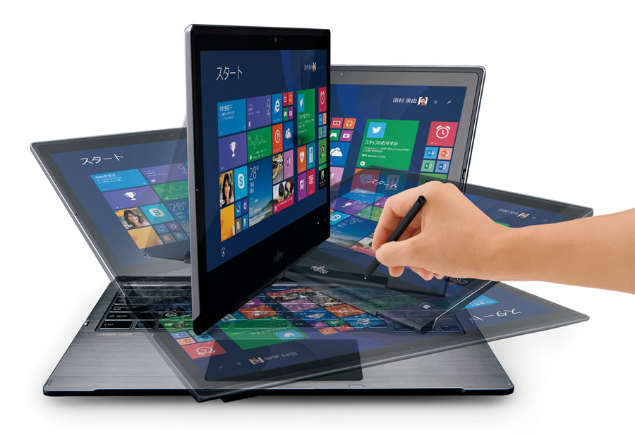 - 13.3型コンバーチブルノート「LIFEBOOK THシリーズ」では、「TH90/T」をベースにフルHD液晶、4GBメモリといった構成を選択できる「WT1/T」を提供します。ストレージは約256GBのSSDも選択できます。