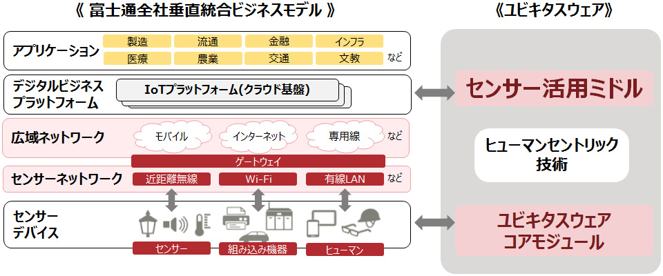 当社は、お客様の業務に合わせ、人や物の状態・状況・周囲の環境をセンシングし、解析・分析することですぐに活用できる価値あるデータを提供するIoTパッケージ「FUJITSU IoT Solution UBIQUITOUSWARE(フジツウ アイオーティー ソリューション ユビキタスウェア、以下、ユビキタスウェア)」を開発しました。