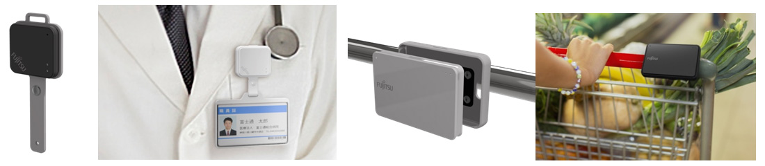 (1)ロケーションバッジ・タグ(屋内外測位端末) ※富士通フォーラムにおいて試作機のデモを行います。