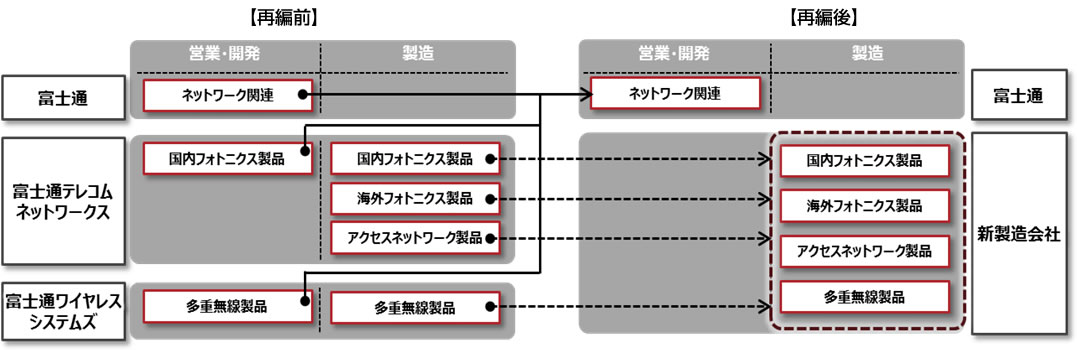 富士通グループに分散しているネットワークビジネスの営業、開発機能を当社に統合するため、2015年10月1日付で、富士通テレコムネットワークス株式会社(本社:神奈川県川崎市、代表取締役社長:井上 保、以下、富士通テレコムネットワークス)、富士通ワイヤレスシステムズ株式会社(本社:埼玉県熊谷市、代表取締役社長:岩崎 茂喜、以下、富士通ワイヤレスシステムズ)を当社に吸収合併します。これにより、一体運営による事業効率化や分散ロスの解消を図るとともに、当社の強みであるネットワーク基盤に関する先進技術を活用した製品開発力と付加価値の高いネットワークソリューションの提供を一層強化いたします。