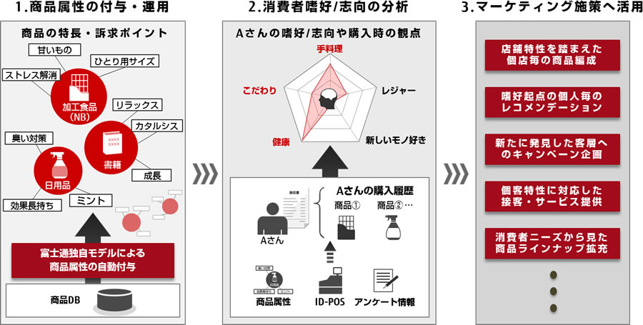 当社は、このようなニーズに対応するため、消費者の嗜好を分析しマーケティング活動に活用していくための新たなソリューションを提供します。