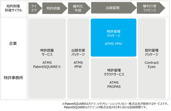 これらの課題に対応するため、当社は、これまで提供してきた特許管理パッケージ「ATMS PM2000」の後継サービスとして、知的財産の権利化手続などの業務の効率化や、事業貢献に向けた知財管理情報活用の支援を強化した「ATMS PMV」を販売開始します。
