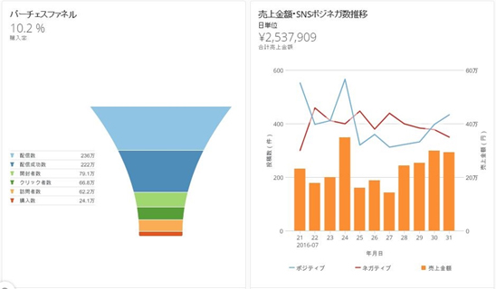 | マーケティングテンプレート | 当社は、BMP(Business Management Platform)の導入支援で培った業績評価ノウハウをもとに、100種類を超える豊富なマーケティングテンプレートを整備しており、これを活用してXDPに蓄積したデータを容易に可視化し、KPIマネジメントに活用することができます。また、このテンプレート導入後も、利用者自身がテンプレートを直感的な操作で自由にカスタマイズすることができます。また、把握するべきKPIや表現方法を臨機応変に変更することで、市場環境の変化に対応し、マーケティングROI最大化を支援します。 |