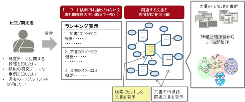 図1. Zinrai活用による技術文書の検索・可視化