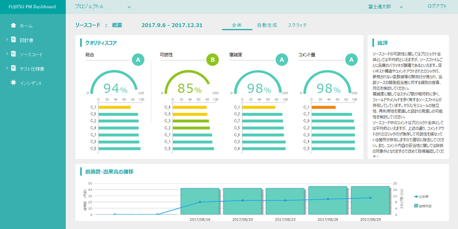 プロジェクトの進捗状況や品質状況をダッシュボード上で可視化し、プロジェクトマネージャーがリアルタイムに把握することを可能にするツールです。SEが利用する定型化された開発環境から、プロジェクトに関連した設計情報、プログラム情報、テスト実施状況等を自動収集し、より詳細な情報を分かりやすく可視化し、プロジェクトの状況をより正確に把握する事で、精度の高いプロジェクト管理が可能になります。