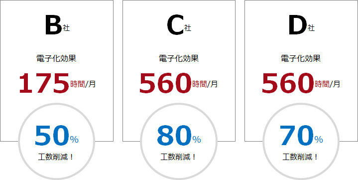実証実験に参加した企業65社のうちB社、C社、D社とも、月175時間以上の作業時間削減の効果が確認できたとともに、50%以上の工数削減が見込まれています。