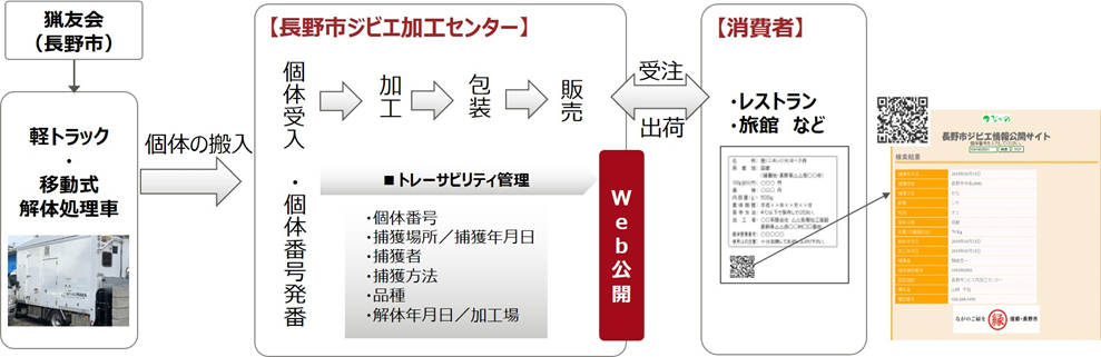 図:ジビエ商品管理システムによるジビエの個体管理の流れ