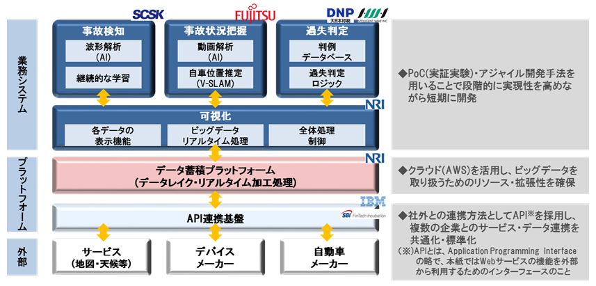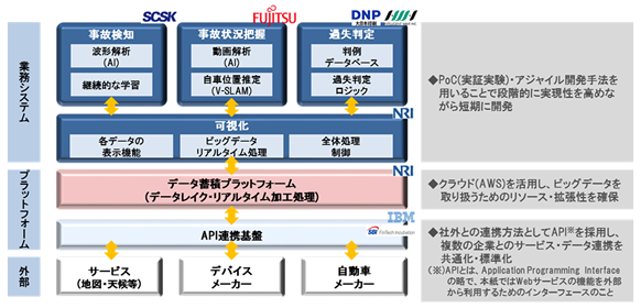 MS&ADインシュアランスグループのあいおいニッセイ同和損害保険株式会社(社長:金杉 恭三)は、テレマティクス(注1)自動車保険のパイオニアとして、最先端のテレマティクス技術を活用した全く新しい事故対応サービス「テレマティクス損害サービスシステム」を富士通株式会社(社長:時田 隆仁)、株式会社野村総合研究所(会長兼社長:此本 臣吾)、SCSK株式会社(社長:谷原 徹)、大日本印刷株式会社(社長:北島 義斉)、株式会社インテリジェント ウェイブ(社長:井関 司)、日本アイ・ビー・エム株式会社(社長:山口 明夫)、SBI FinTech Incubation株式会社(代表取締役:木村 美礼)と共同で開発いたしました。各社の最新技術とテレマティクス情報を複合して事故対応で実用化する取組みは業界初(注2)であり、これまでにない革新的かつ高品質な事故対応サービスをお客さまへ提供します。