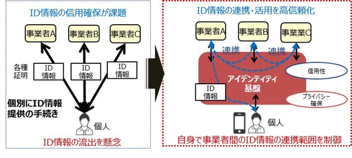 様々な事業者が保有するユーザーID情報を、ユーザー自身のコントロールの下、事業者間でセキュアに連携可能にするプラットフォームの共同開発について検討。