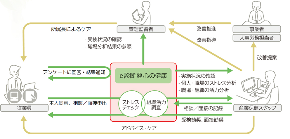 - 「e診断」によるストレスチェックの実施と相談窓口の設置