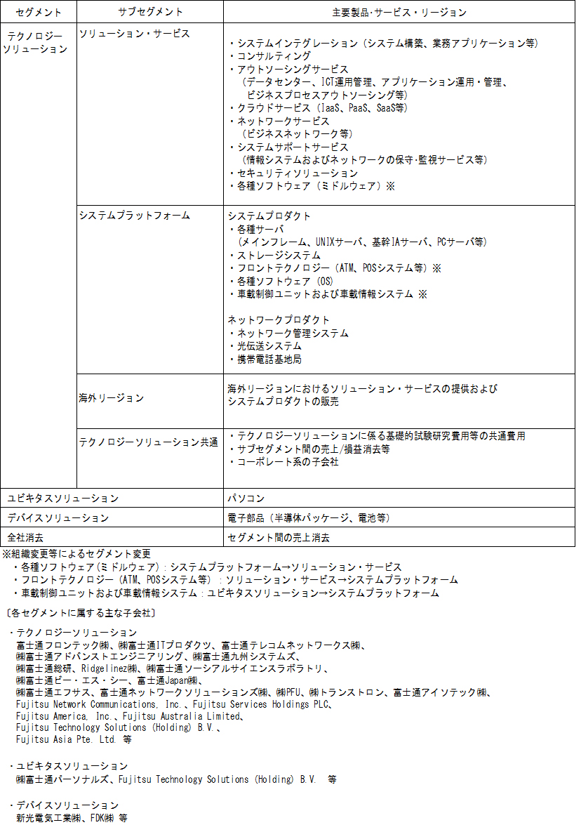 詳細は【 新セグメントに属する製品およびサービスの種類 】をご参照ください。