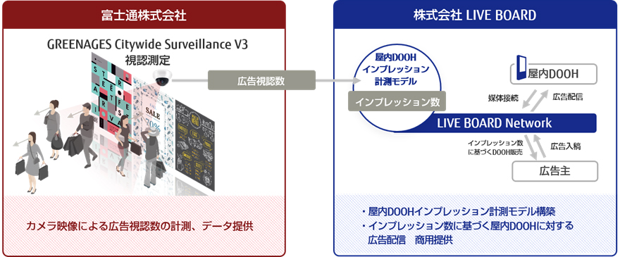 LIVE BOARDと富士通は、今後も、インプレッション計測モデルを活用して、新たな屋内DOOH市場の拡大に貢献します。