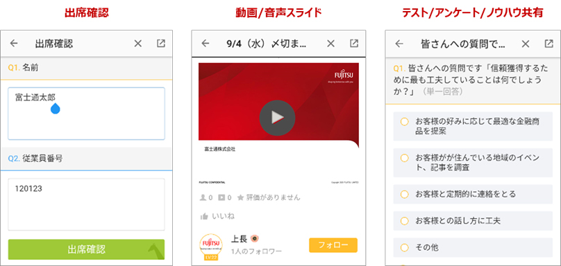 当社は、金融分野における営業職員に向けた新たな教育プラットフォームサービス「FUJITSU Finplex アドバンスドチーミングエクスペリエンスサービス powered by UMU(以下、Finplex アドバンスドチーミングエクスペリエンスサービス)」を8月7日より提供開始します。現場の営業職員が保有するスマートフォンを用いて、移動中や隙間時間に効率的にスキル習得できるマイクロラーニングやAIを活用したロールプレイングでの営業演習、集合せずに情報伝達やコミュニケーションできるデジタル朝礼サービスなどをセキュアに提供します。